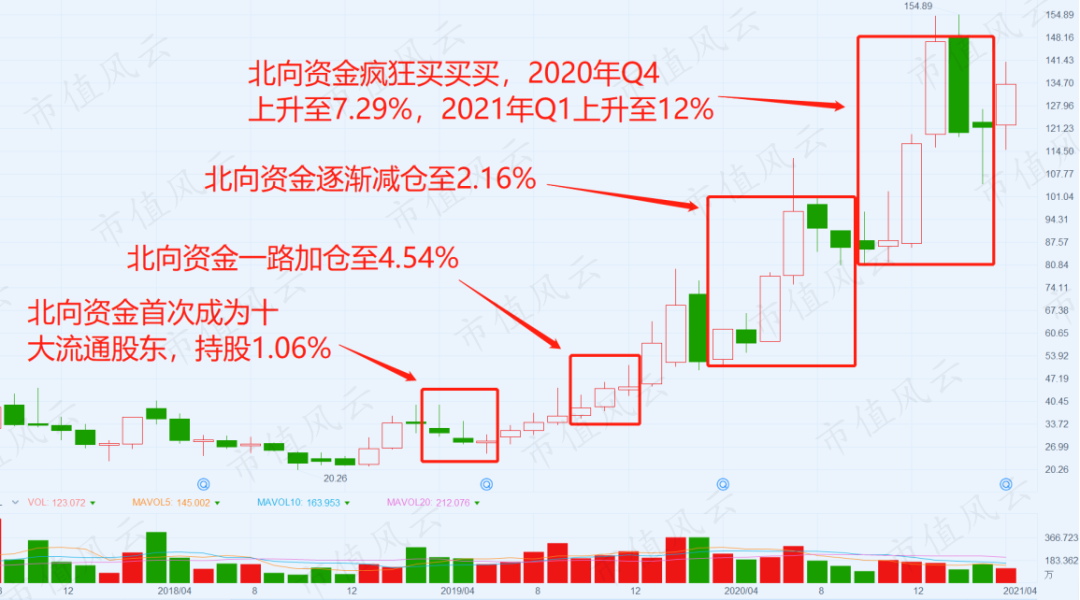 北上资金一路加仓,2019年Q4已持股4.54%,但随后在2020年Q3减持至2.16%。