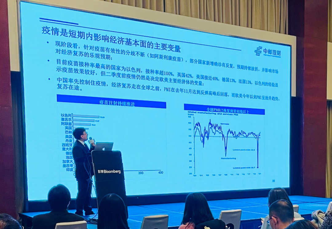 关于美国经济复苏和疫苗带来的影响, 邮储银行理财子公司资深投资经理许鑫岳先生 分享了他的观点。在疫苗接种顺利展开的基础上,本次美国经济复苏的推动力是史无前例的货币宽松和财政扩张;其次,更重要的是出现了近十年最优的居民部门杠杆率水平和历史最高居民储蓄率水平,使得居民可以改善住房和可行的消费。最后,还需要关注本轮通胀影响。