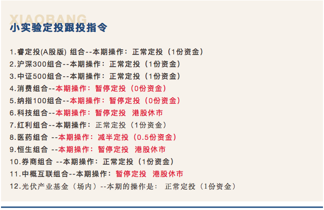 第11期睿定投A股版组合定投小实验,本期的操作是 : 正常定投(1份资金)。