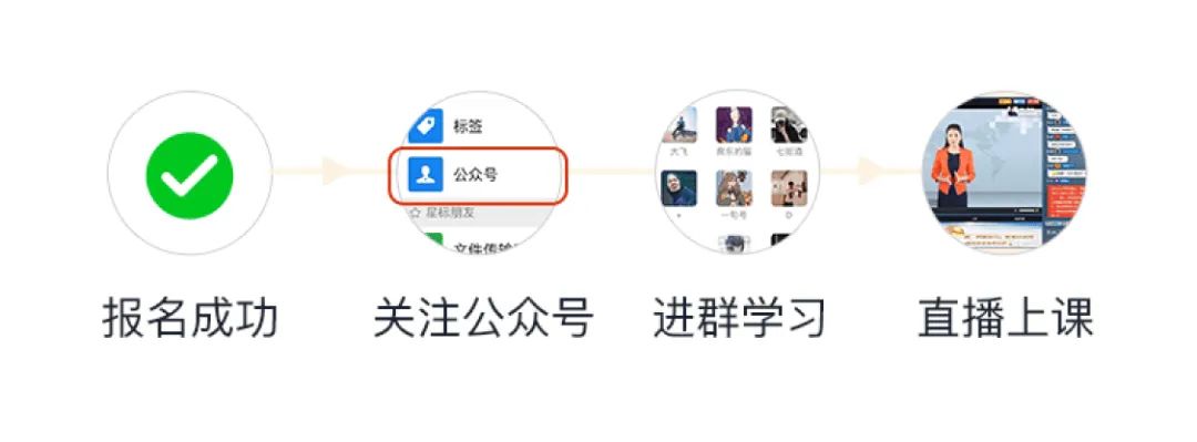 采用 视频直播+微信互动 的AI双师教学模式,足不出户就能在公众号中看直播、在微信群中听语音直播、参与讨论、获取学习资料。