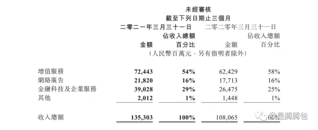 增值服务(主要是指游戏业务),还是贡献了总收入的半数以上,金融科技及企业服务这块,在迅速增长,对总收入的贡献接近三分之一。