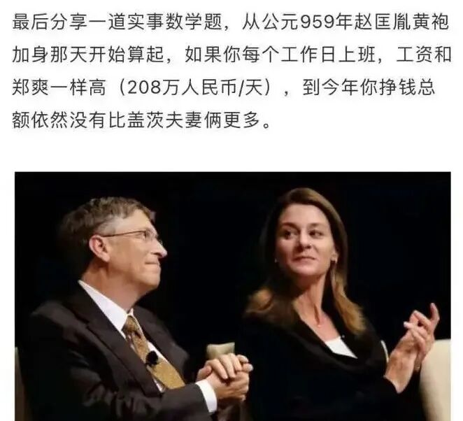 答案如下:为什么差距这么大呢?是因为每天赚208万太少?还是因为一千年太短?聪明如你知道,盖茨以及别的首富们,是靠非线性的指数式增长,实现了财富的惊人积累。每天赚208万当然很多,可还是靠出租时间赚钱,属于常规的“日拱一卒”。