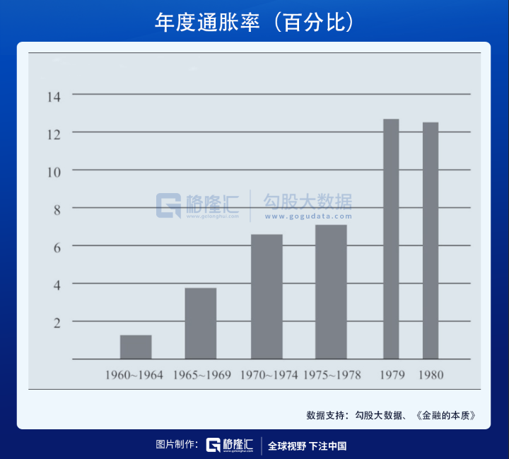 对于高通胀的抨击,凯恩斯显然是站在列宁这一边的,他本人也认为:再没有比通过摧毁一国的货币来摧毁一个社会的基础更容易的事情了。 20世纪60年代中期,战后的美国依然处在动荡时期,朝鲜战争、越南战争加上经济的数次滑坡,使得货币政策变得过于宽松。 经济过热在当时的确解决了包括军费、就业等问题,但正如米尔顿·弗里德曼所言:提高通货膨胀率就好比吃糖——你吃了一块糖,在短期内它能给你充沛的能量,但过了一段时间,它只会让你发胖。 情况逐渐恶化,叠加石油危机引发了美国史无前例的滞胀。1960~1964年间,美国年平均通货膨胀率只略高于1%;而到了20世纪70年代末期,以消费者价格指数衡量的通货膨胀率攀升到约13%。
