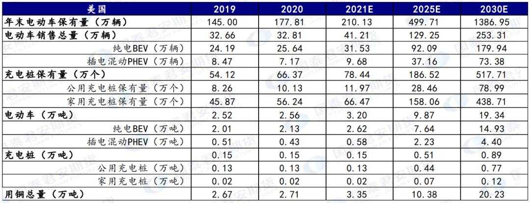 美国新能源汽车用铜量测算:2021-2030年年均用铜量11.88万吨