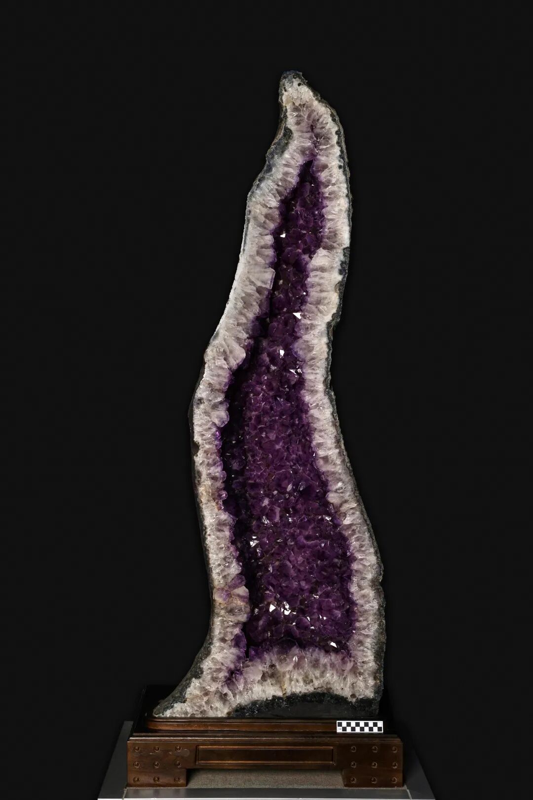 紫晶洞也叫雷公蛋,有圆形或椭圆形的,中空的。在其内壁布满了很多紫水晶,向着球形的中心方向生长。 紫晶洞