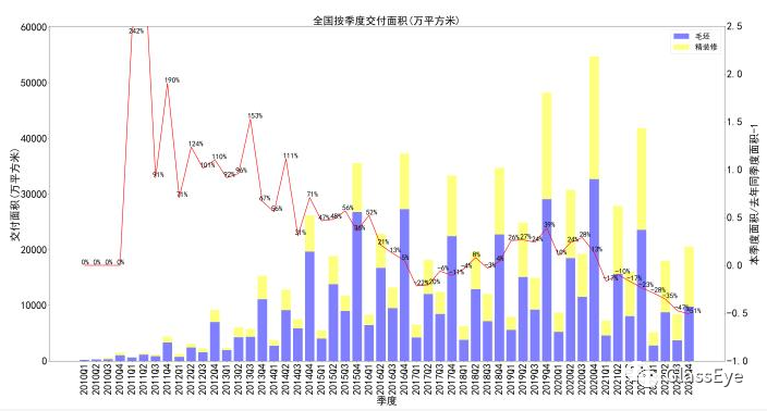 这幅图,是一家我非常欣赏并且非常资深的证券团队通过大数据处理,从一家房屋咨询中介网站爬虫下来得到的全国房屋交付面积增速,即,实际竣工增速。