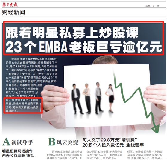 《扬子晚报》曾有叶飞的负面报道,称其担任浙江某大学EMBA总裁班“股票特训班”讲师,跟随他上课的23名EMBA学员巨亏逾亿元。