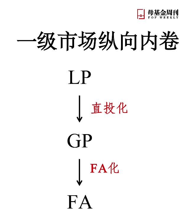 纵观整个投资链条,LP通过直投挤压GP的生存空间,生存受阻的GP没办法去做FA,FA也越干越难甚至面临没活干,“内卷”的淋漓尽致,整个行业进入了非效率竞争环境。 对于机构来讲也是如此,LP对GP降维打击,GP对FA降维打击,整个一级市场分工进一步模糊,信息进一步扁平,而交易效率却在降低,竞争成本又在提高。