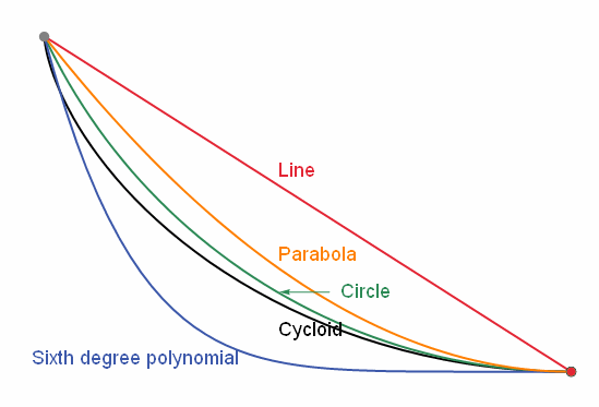 伽利略于1630年提出了一个问题,在起点和终点确定的情况下,一个固定质量的小球仅依靠重力,沿着一个斜面自由下滑,那么什么样的轨道让小球到达终点的时间最短?