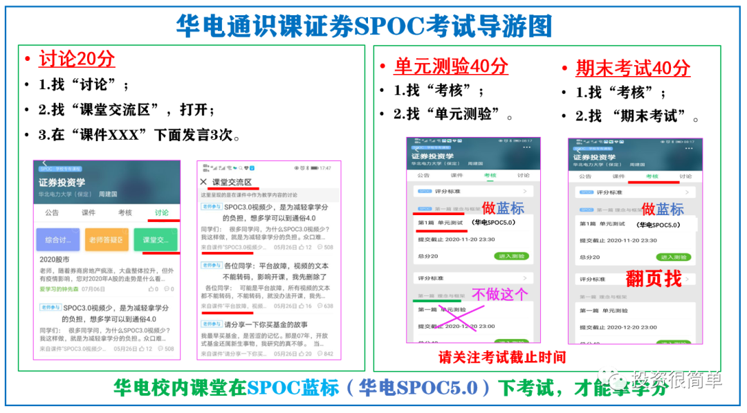 请在蓝标考试下考试,才能拿学分。请在课堂交流区讨论。 (有华电SPOC5.0标识),请看考试导游图。