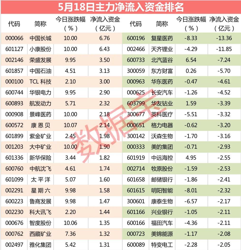 沪指5月18日上涨0.32%,主力资金全天净流出142.14亿元。其中, 创业板主力资金净流出47.96亿元,沪深300成份股主力资金净流出78.23亿元。
