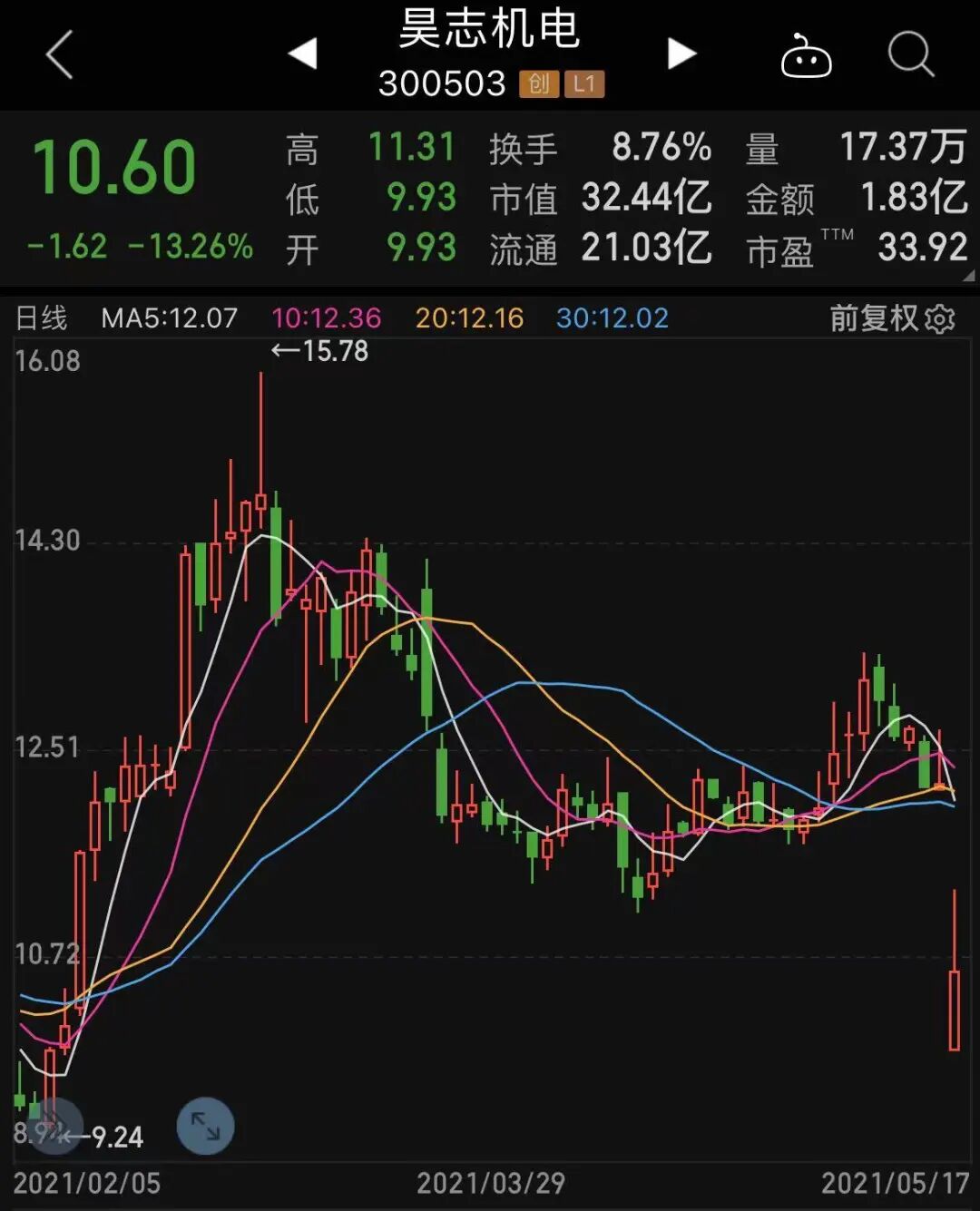 今日开盘,陷于话题旋涡的昊志机电低开近19%,隆基机械、东方时尚、今创集团、法兰泰克利通电子跌停。