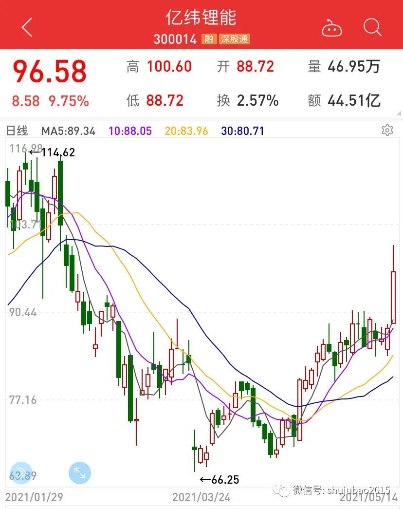 锂电池龙头亿纬锂能今天盘中一度大涨超过14% ,有外媒报道称,特斯拉正与亿纬锂能谈判,将其纳入上海工厂供应链,以寻求增加低成本电池的采购。不过,截至目前,特斯拉和亿纬锂能方面暂时都未对此做出回应。