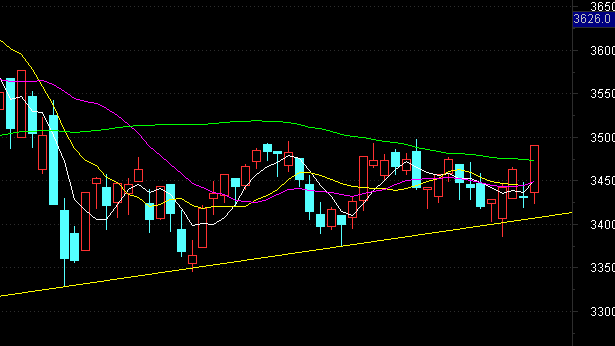 大盘之前3400附近,一路坚持看多,现在回头看,已经涨了近百点,股票就是博弈,强趋势线附近博弈,跌破止损也就损失10几个点,但是,一波上涨,却有一百多个点的涨幅,亏损和收益比,可以达到1:10以上,这个博弈,怎么能不去?