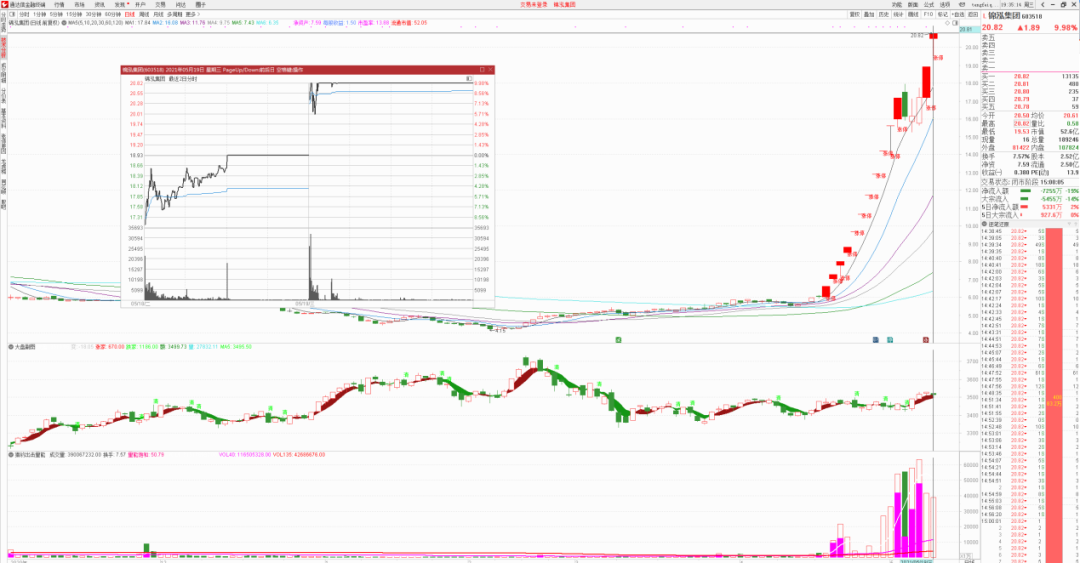 锦鸿集团这种属于空中加油,没有经历过长时间和大幅度的调整,调整时间很短,算是第一波主升后的余震,这种一般后续的高度会有限,因为前面发力太狠,而且没有经过长时间的休息,但是不是绝对,只是从概率上更多是横盘期间,短线资金介入承接,然后利用情绪,股性辨识度,缩量加速,短线逢高出货,短炒的一种打法,危险点在于连续缩量加速之后的接力,容易大面