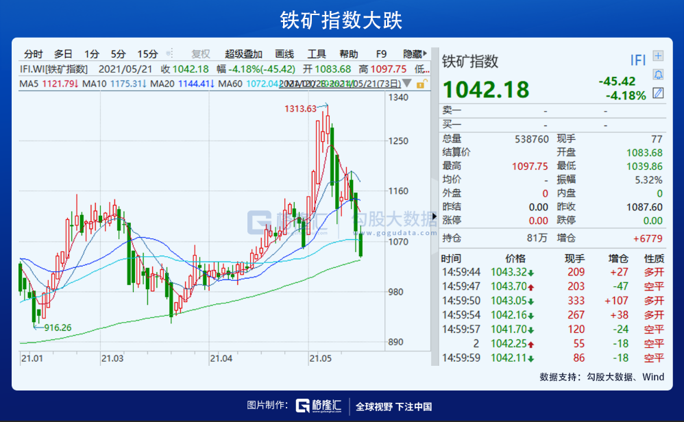 截至今日,黑色系商品大幅跳水,铁矿石期货从5月12日的高点跌下来超过20%,动力煤期货尤其惨烈,回撤幅度达到25%,除粮食期货外都走出了节后A股的行情。