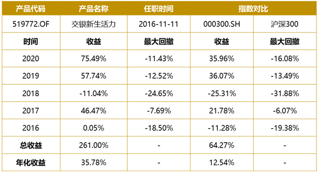 杨浩目前管理了4只基金,有两只是去年新发的。2015年8月管理至今的双息平衡,共获取256.17%的总回报,年化回报26.15%,另一只2016年11月管理的新生活力至今也有257.1%总回报,年化回报35.19%,同类排名非常靠前,这两只基金多次获得金牛以及明星基金奖。