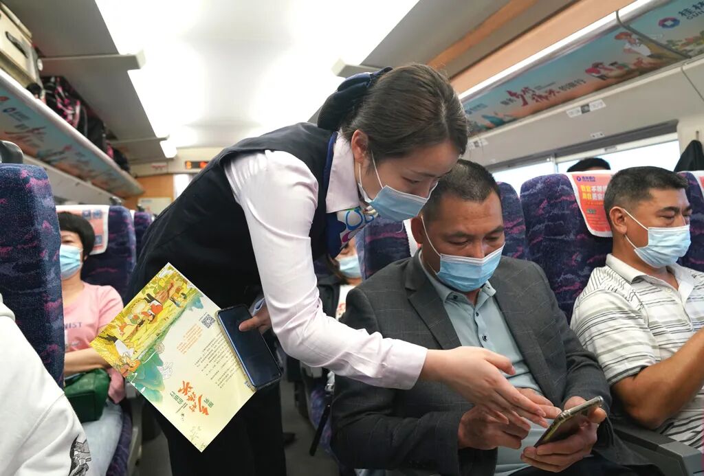 车厢内,桂林银行员工向乘客发放宣传折页、介绍桂林银行服务乡村振兴工作,通过形式丰富的宣传活动吸引了众多乘客的踊跃参与。
