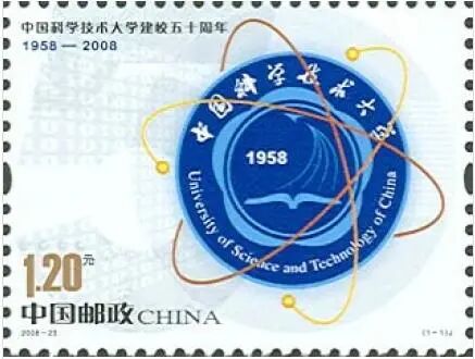 该邮票采用胶印的印制方法,以数字50为其背景,代表了建校50周年;以中科大的校徽为其主图,深蓝色的背景色符合并突出了中科大的校色以及校训“红专并进,理实交融”。