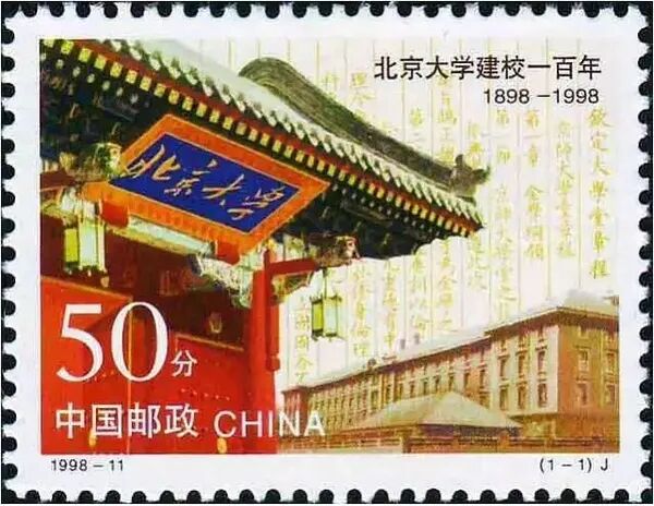 《北京大学建校一百年》邮票采取了《钦定大学章程》、“北大红楼”与北京大学西校门,采用独特毛泽东主席题写“北京大学”的匾额作为设计素材。