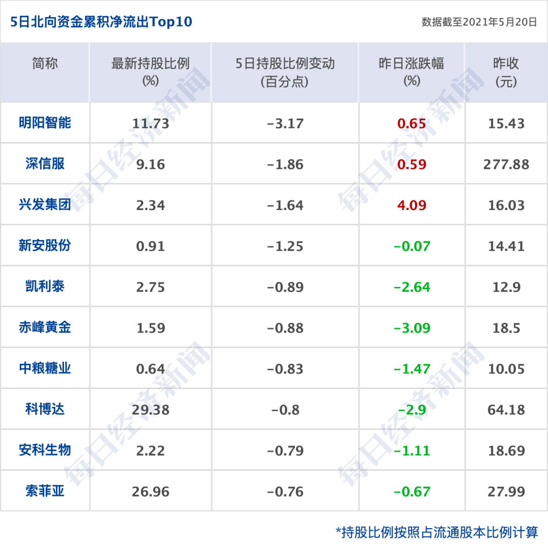 5月20日,北向资金净流出15.25亿元,其中沪股通净流出14.85亿元,深股通净流出0.4亿元。前十大成交股中,净买入额居前三的是宁德时代、药明康德、美的集团,分别获净买入4.63亿元、3.86亿元、3.15亿元。净卖出额居前三的是恒瑞医药、东方财富、长安汽车,净卖出额分别为5.78亿元、5.14亿元、4.86亿元。