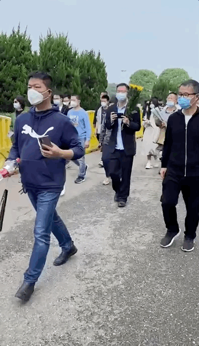 人们手捧鲜花排起长队