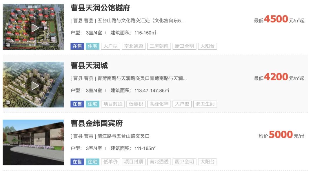目前,曹县城区约有40多个在售楼盘,其中不乏头部房企。