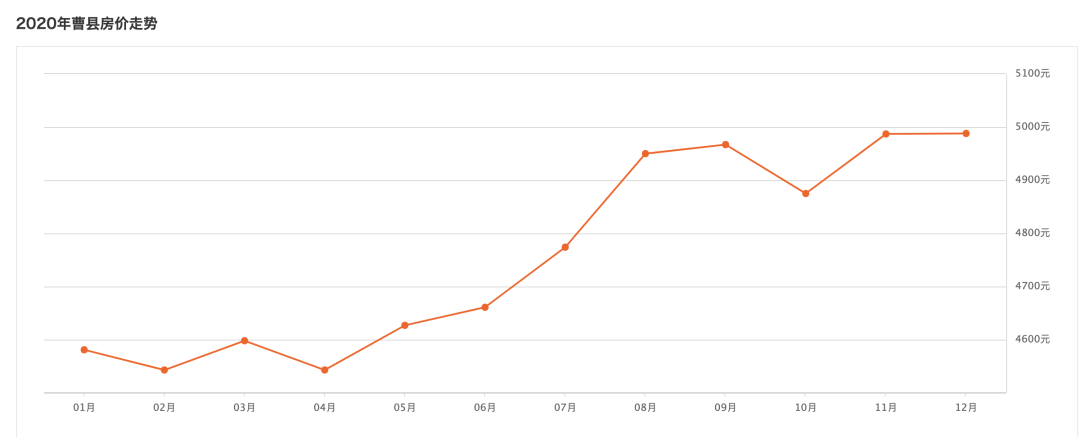2019年前3个月,曹县房价还基本稳定在6300元/平方米档,此后便开始下跌, 目前维持在5000元/平方米上下 。