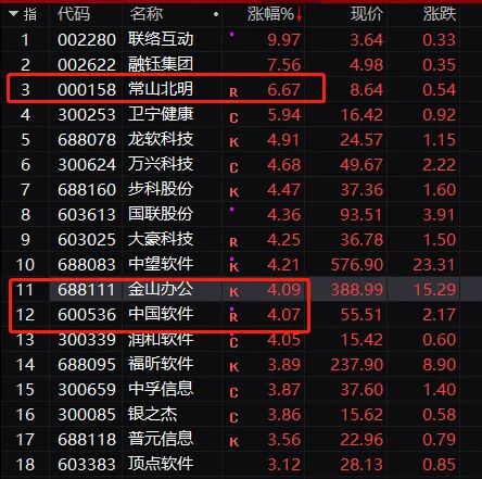 受此消息影响, 国产软件板块 早盘持续上扬,华为概念的常山北明一度拉升冲击涨停板,上午收涨6.67%,联络活动涨停,龙软科技、万兴科技、金山办公、中国软件等纷纷大涨,涨幅超4%。