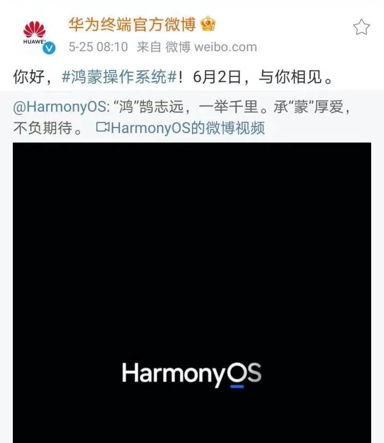 今天的重磅消息是,华为宣布鸿蒙手机马上就要来了。华为5月25日公布,计划在6月2日正式举办鸿蒙产品发布会,华为公司官方微博25日发布鸿蒙手机操作系统开机画面视频。