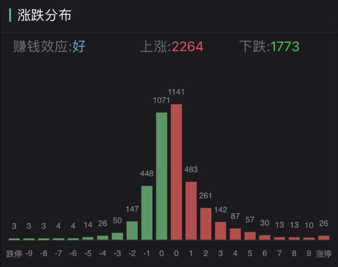 个股方面涨多跌少,2264个上涨1773个下跌,上午成交6163亿元。