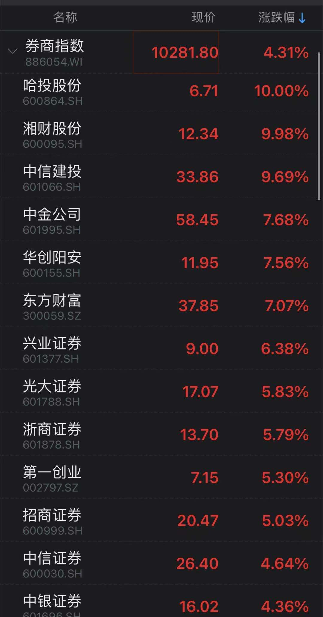 A股在盘整2个多月后,涨出突破态势,牛市旗手的券商股,最近一再异动,今天上午彻底爆发了!