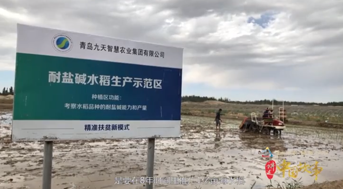 图为青岛耐盐碱水稻生产示范区(图片来源:视频截图)