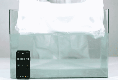 我们还做了个有趣实测,整件拾柒棉 T恤放入水中,5秒就会沉水,吸水效果非常强大!