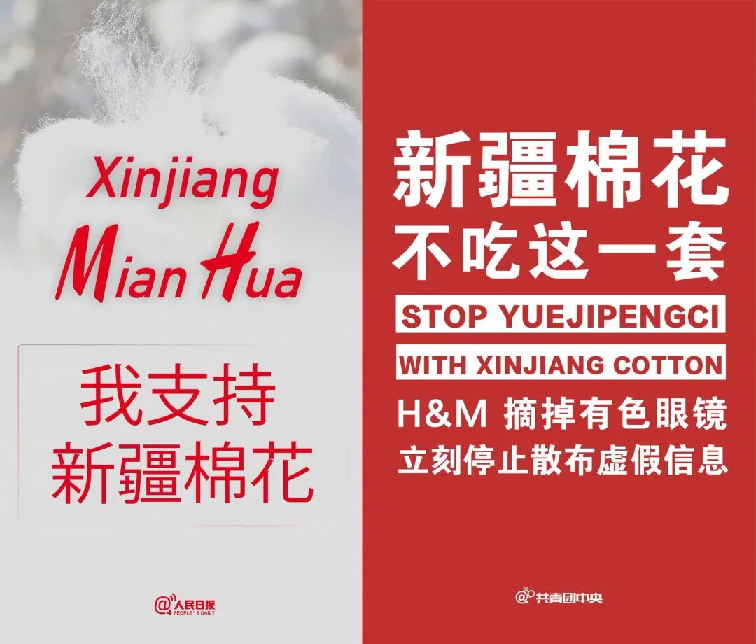 中国是H&M品牌的重要市场之一,而它却一边造谣抵制新疆棉,一边又想在中国赚钱。 对于如此恶劣“越级碰瓷”行为,我们明确表示:新疆棉花不吃这一套!