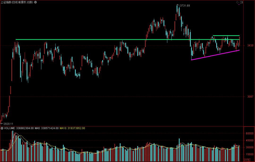 二、从形态结构上而言,券商短期未形成较好的震荡中枢,也就是说周五的阳线基本上是超跌而集聚的做多盘,所以短期结构上还可能存在震荡整固的可能。而另外一方面,从大结构上而言,中期形态尚处于右肩大结构整理中,所以,按照券商的高弹性的属性,操作上依然有难度。