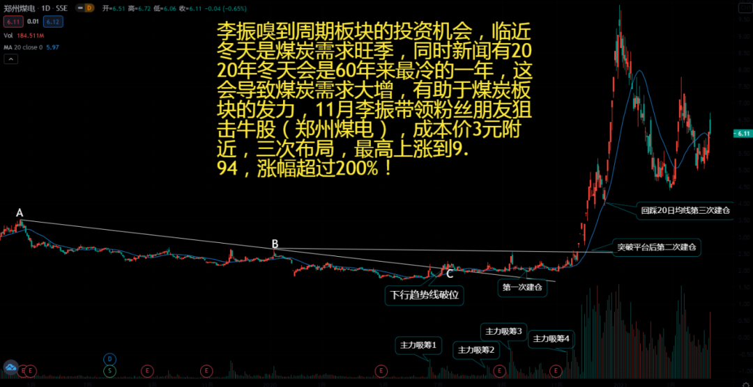 在A股历史发展长河中,总会留下一些优秀先驱者的足迹。就在去年2020年11月份第四季度,李振先生曾用卓越的操盘手法率领一众粉丝弟子对600121(郑州煤电)布局操盘,期间三进三出,带领着追随者们斩获高达2倍的收获,这让博主我羡慕不已!