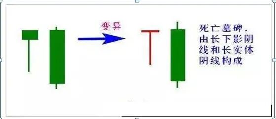 1、死亡墓碑K线组合由锤头线和阴线组成,阴线为中阴线或大阴线。
