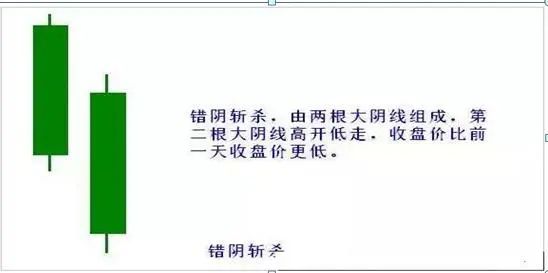 1、错阴斩杀K线组合由两根大阴线组成,第二根大阴线高开低走。