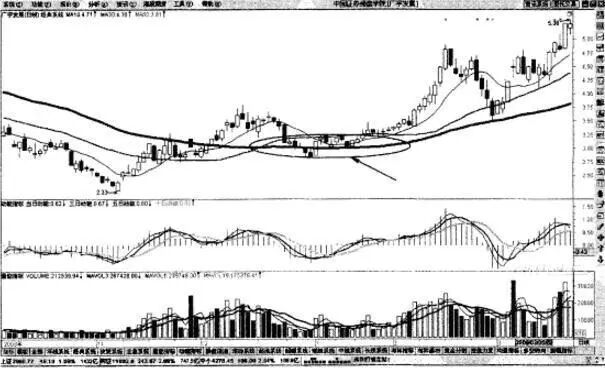 4、在操作上,只有等待明显的大阳线突破信号出现时,才是介人良机。
