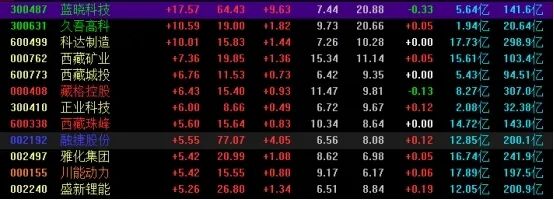 锂电池一直说资源股里面非常强势的系列,我已经说了几天的,相信看懂的人都是吃到肉的。我们国内锂矿资源主要分布在四川,而且是品质不高的锂辉石icon,主要都是在川能手里,而且其它拥有矿资源的,不是没有开始开采,就是路都没有修通的,所以锂矿资源不得看向海外。我们自己锂资源最大来自盐湖资源,但是盐湖主要分布在西藏,青海。它们这里资源多,但是自然条件差,交通运输不佳,所以还是有非常大的发展控制,毕竟盐湖资源是必须开发的,今天发布将建立世界级的盐湖产业基地,那么盐湖提锂就成为关键之关键。所以只要有锂资源,那么就是控制新能源汽车icon的上游产业链的,藏格的锂,川能的锂,珠峰的锂,随着锂价格上涨,未来带来直接受益就是业绩大幅增长。一定是低吸,不是追高。