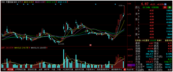 今日中国石油开盘继续走强,截至午间收盘,中国石油涨3.65%,创年度新高,报4.83元/股。12个交易日来看,股价累计涨逾16%。