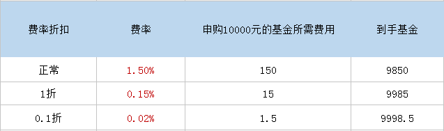可以简单计算下: 投资1万,申购费不打折,0.1折能省148.5元;比起1折,0.1折少了13.5元。