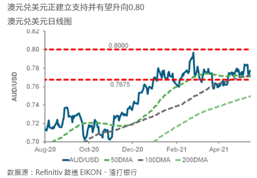 澳元兑美元由0.77之下的支持位反弹,并有望升向关键阻力0.80。投机性仓位偏低可能是市场对地缘政治风险担忧的结果,但在商品价格继续见到支持,全球增长继续扩大下,我们仍预期高贝他系数的货币将有跑出。即使澳元兑美元出现更深调整,汇价料于0.75左右会有什强支持。