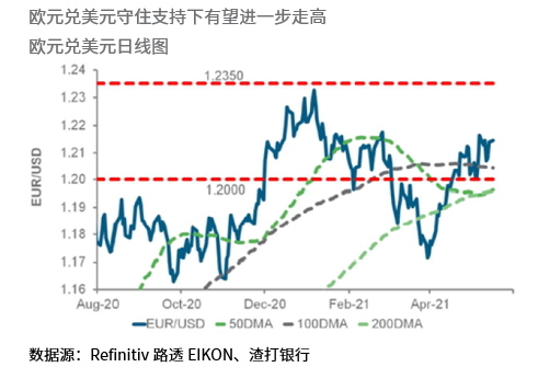 美元周五下跌,美国零售逊预期降低了市场对通胀预期,并舒缓了对美联储可能需要收紧政策的忧虑,后者是上周美元反弹的驱动因素。上述零售数据亦有助美国股市回升,以及美国国债10年期收益率温和回吐,而风险情绪改善亦推动欧元兑美元升向1.2140。欧元兑美元于1.1940-1.2040间有多个技术支持,而我们亦见到汇价短线有机会上试2月高位1.2240,以及早前趋势高位1.2350。