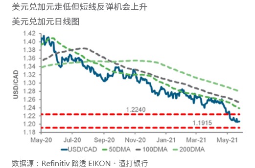 在高波动货币之中,加元受零售数据偏强支持继续靠稳。虽然四月初步数据表现略为放缓,但我们相信加拿大央行将不会对此太过在意。由于跌势动能仍然偏强,我们维持看淡美元兑加元的观点。任何修政性反弹都有机会于升至1.2240 - 60附近时开始减弱。另一方面,其他例如澳元及纽元等高波动货币则在美元受惠美国采购经理指数偏强下偏软。美股气氛疲软亦可能是利淡因素,但我们仍视澳元及纽元等对风险较敏感的货币回吐是增持机会。只要投资气氛未至于严重受损,我们仍有望见到澳元兑美元重拾上升动力。