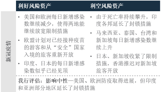 (+) 利好因素:美国、欧洲疫情好转,两地都保持政策刺激