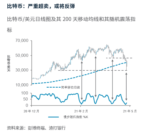 比特币跌至强支撑位,及严重超卖的状况,预示价格有望回升。但是,比特币至少需要突破47000美元,其短期下行压力才能逐步消退。