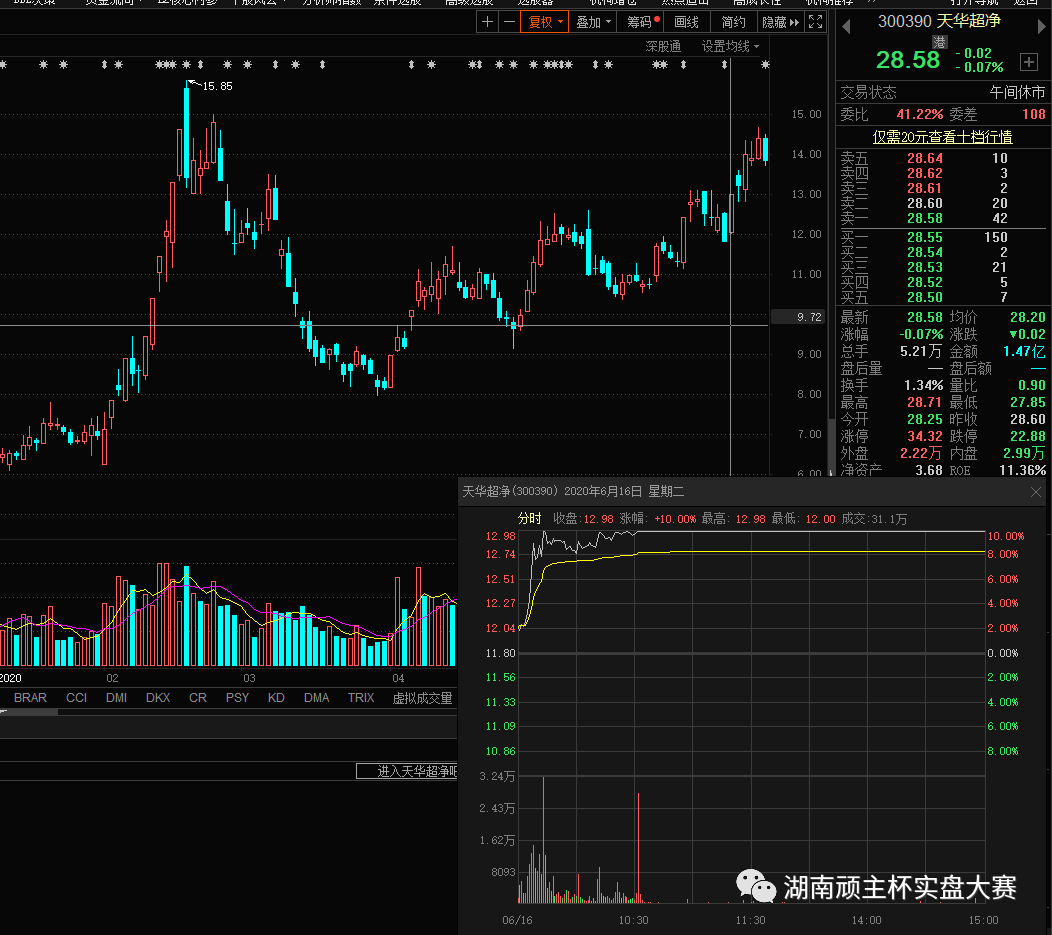 6月16日主人公先是轻仓打板早盘强势股意华股份202万,后又重仓691万打板早盘强势烂板回封股:天华超净,