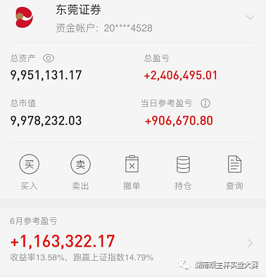 6月11日世运大幅反弹,主人公迅速在红盘四个点左右止损走人, 总收益再度回升到10%左右,不过他还留了35万的仓位,也是惊险之旅。